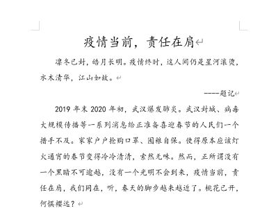 为了激发同学们的爱国主义情怀、弘扬时代正能量,展现中华民族在复兴之路上不屈不挠、愈战愈勇的民族精神,VSport体育自律会心理健康部开展“战疫路上,你我同行”主题征文活动。