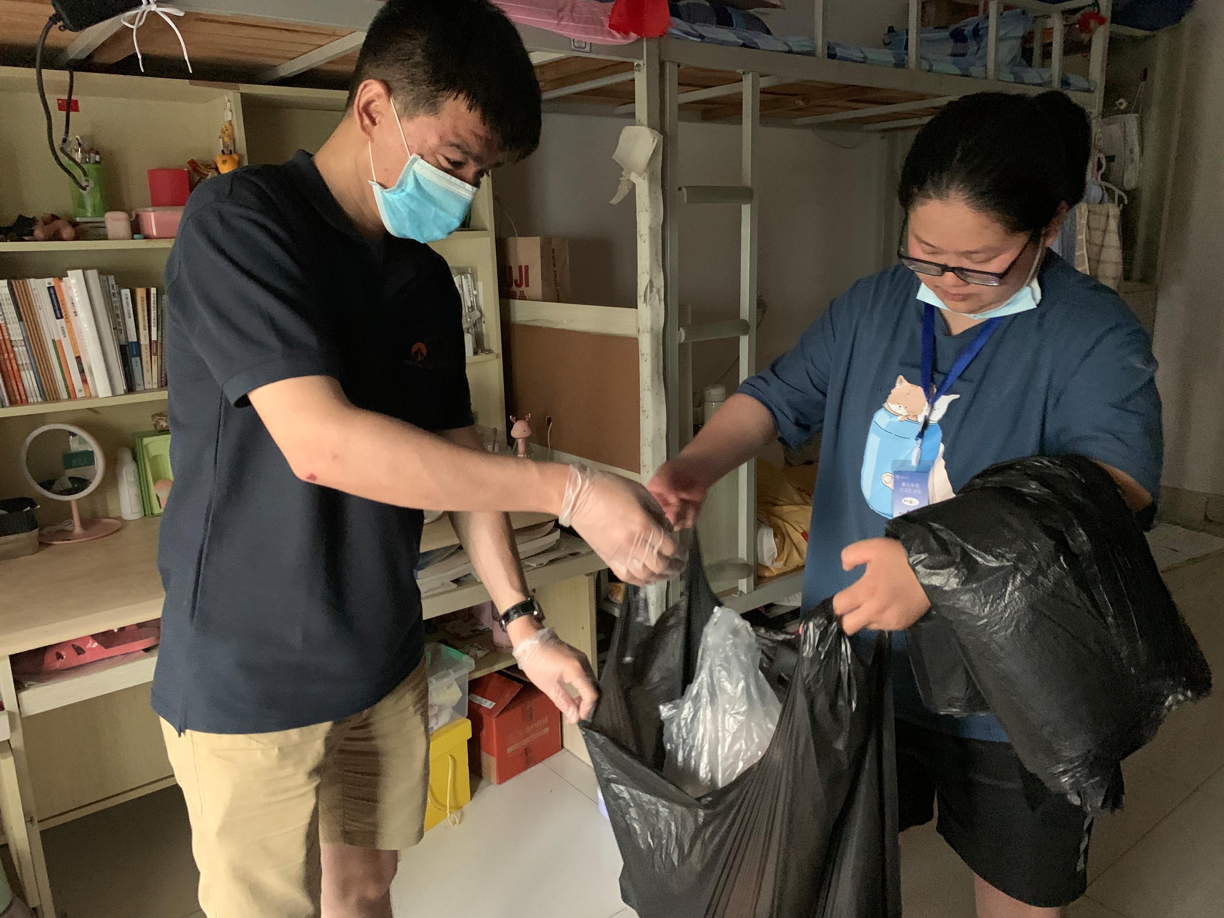 在清洁整理的过程中,老师和同学们积极投入,分工合作,配合密切。首先,检查每个宿舍中潜在的安全隐患,进一步检查员工宿舍内的桌椅、水电、空调以及墙壁等设备设施情况。认真把员工放假时没有及时扔掉的垃圾全部打扫干净、凌乱的床铺整洁一新、书桌物品摆放井然有序,小花小草也重新浇了水。为有需要的同学提供了晒被子、清垃圾、护绿植、寄快递等帮助。通过大家共同努力,宿舍内数月蒙上的灰尘也被打扫得干干净净,公寓环境卫生干净整洁,校容校貌焕然一新。贴心的服务、周到的考虑,让员工惊呼感到了万般“宠爱”。