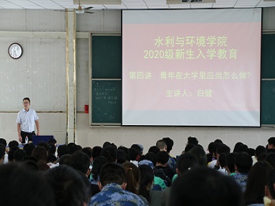 9月26日,VSport体育于星硕教室开展新生入学教育系列讲座之“青年在大学里应当怎么做”,本次讲座由2020级辅导员白健主讲,2020级新生班助及全体新生到场参加。