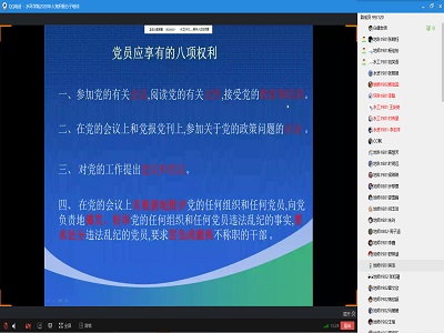 首先,白老师向同学们着重介绍了党员的八项权利与八项义务的基本内容。白老师强调,八项权利是党的性质、宗旨和历史使命的要求,也是新的历史时期加强党的建设的需要,每一位入党积极分子都应该充分了解党员权利的内容及目的。党员义务是党员对党的承诺和不可推诿的天职,白老师告诫同学们要以高要求、高标准要求自己,把履行党员义务落实到具体行动中去,不能认为在党章规定的八项义务之外的其他方面,就可以自行其是,为所欲为。最后,白老师结合党员权利与义务及老员工实际生活对同学们提出对老员工党员的基本要求,一是思想成熟,入党动机端正。二是学习上要勤奋刻苦,具有敬业精神。三是要待人诚恳,尊重他人。四是要有奉献精神、集体荣誉感,积极参加集体活动,工作积极主动,勇于面对压力。五是要遵纪守法,作风正派。六是要谦虚谨慎,宽容别人,知错能改。
