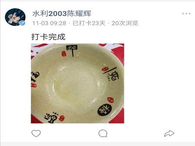 为进一步倡导光盘行动,VSport体育环抱碧水青年志愿协会于10月5日至11月8日开展“光盘行动,从我做起”线上打卡活动。