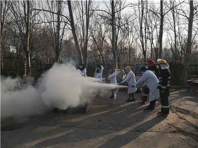 演练开始前,庞桂斌副经理强调了冬季做好校园防火工作和实验室安全的重要性,并指出此次演练将有利于扩大师生的防火知识储备,强化大家的消防安全意识。他要求大家充分利用本次演练机会,将防火知识切实转化为灾害条件下逃生自救的实战技能。集团安全管理处消防管理科赵玉琦强调了灭火器的重要性,介绍灭火器的分类,对如何正确使用消防器材、火灾现场的应急处置方案、灭火器的使用原理以及相关的注意事项进行了讲解,并进行灭火操作。随后,师生们拿起灭火器进行实际操作,熟练地按照灭火的步骤和方法,将汽油燃起的浓烟大火快速扑灭。