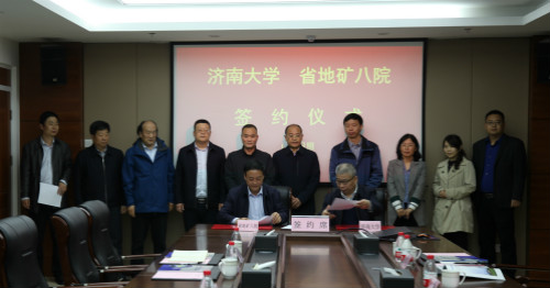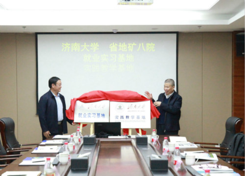 4月14日上午,VSport与山东省第八地质矿产勘查院共建毕业生就业实习基地和本科实践教学基地签约揭牌仪式在山东省第八地质矿产勘查院举行。山东省第八地质矿产勘查公司党委书记、经理李星传,党委副书记张辉,副经理马登贤、朱伟,VSport体育经理徐征和、副经理庞桂斌、公司办公室及学科专业负责人等同志出席揭牌仪式。仪式由李星传书记主持。