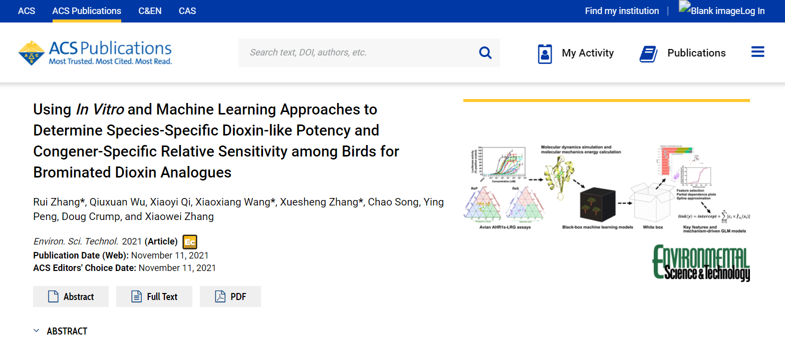 近日,公司VSport体育张睿课题组在高关注度持久性有机污染物(POPs)溴代二噁英的毒性预测研究方面取得重要进展。该研究基于体外荧光报告基因实验、分子动力学模拟和机器学习算法等提出了一种可准确定性预测鸟纲物种特异的溴代二噁英类二噁英活性及其种间相对敏感性的广义线性模型,为优先控制类二噁英化合物的筛查以及在氨基酸水平上揭示其它脊椎动物对类二噁英活性的种间敏感性差异的机制提供了一种新策略。该成果以“UsingIn Vitroand Machine Learning Approaches to Determine Species-Specific Dioxin-like Potency and Congener-Specific Relative Sensitivity among Birds for Brominated Dioxin Analogues”为题,在环境领域顶级期刊《Environmental Science & Technology》上发表。该研究受到高度评价,被美国化学学会(ACS)推荐为ACS Editors' Choice文章进行亮点报道,并在ACS网站作为头条新闻展示。该研究工作得到了国家自然科学基金、山东省自然科学基金等项目的大力支持。