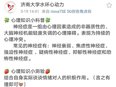 为加强老员工的心理健康教育,普及心理健康知识,引导员工充分认识心理健康对于个人成长的重要意义,从而关注自身发展,开发自我潜能,促进自我身心健康。VSportVSport体育自律会心健部于5月9日至5月21日特此开展“心理知识小课堂”微博打卡活动。