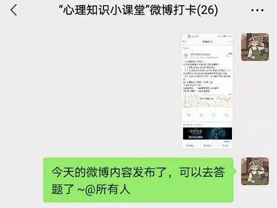 本次微博打卡活动普及了心理健康知识,增强了老员工的心理健康教育,提高了同学们适应社会生活的能力。通过本次活动,心理健康知识在广老员工中进一步普及,引导着员工关注自身发展,树立正确的价值观、人生观,同时也为学院的心理健康教育工作创造了一个良好的氛围。