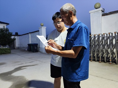 在工作过程中,由于存在着老年人不会使用智能手机甚至没有智能手机、不能熟练使用键盘、本人与证件照变化较大、部分老人听力或视力不佳等客观限制因素,前期工作开展的并不顺利。对此,队员们利用人流量较少的空隙,就出现的问题讨论解决方案并在接下来的工作中付诸实践。团队成员统一密码命名格式,便于记忆与管理,并将写有密码的纸条交付村民以备后用;因腿脚不便而无法亲自到场的村民,队员们便前往其家中进行开通服务;没有智能手机的老人,由队员们使用自己的手机代为注册账户;部分老人视力下降、听力受损,人脸识别时不能很好地理解屏幕提示,队员们便减缓语速,提高音量,并示范相应的肢体动作。面对队员们的耐心与热情,村民们也更加愿意配合工作的开展,许多村民表示了感谢:“有些事儿还就得是年轻人来办。”