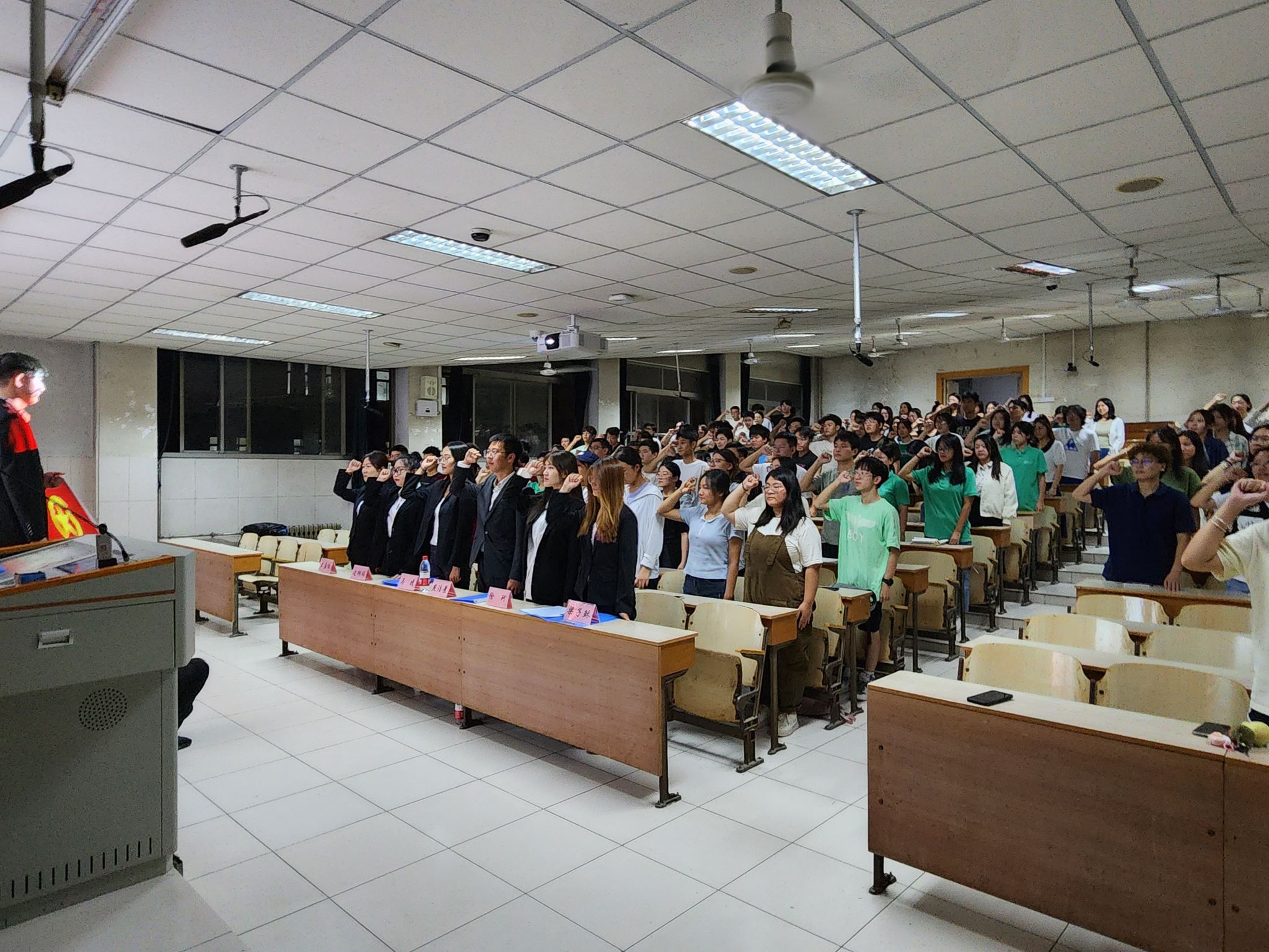 仪式主要分为四部分进行,第一部分,院员工会团建部成员杜沅润带领全体成员重温入团誓词。第二部分,《端正学习态度,锤炼个人修养》专题学习,由院员工会主席团成员燕浩景带领全体成员进行学习。通过专题学习帮助学员们提高学习能力,提升个人素质,为学员的成长和发展提供宝贵的指导和帮助。第三部分,《学习党史国情,坚定责任担当》专题学习,由院员工会主席团成员梁子酥引导成员们进行学习。梁子稣鼓励学员们深入了解中国共产党的发展历程。学习党史,学员们可以更好地理解党的宗旨和初心,从而增强对党的信仰和忠诚。第四部分,《学习重要讲话,践行时代精神》专题学习,由院员工会主席团成员马婧领学,在此环节中,成员在更好地理解和把握时代精神的同时,学习热情也得到了激发。