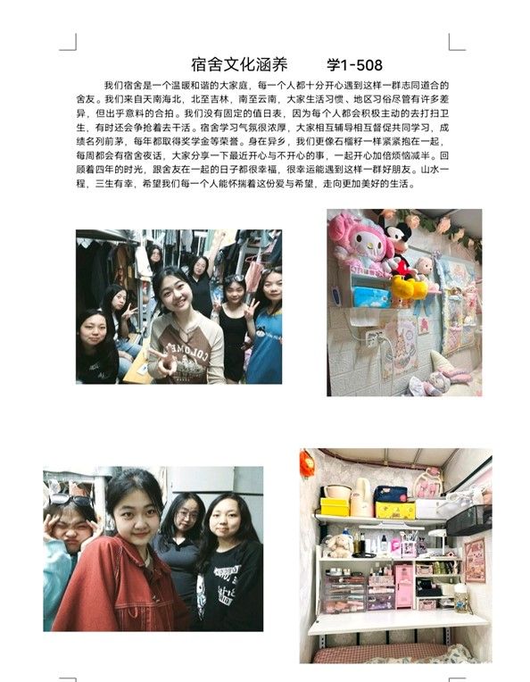 在活动中同学们传承和发扬宿舍文化,提升宿舍的文化涵养,激发员工对宿舍文化的关注和热爱,增强宿舍成员之间的凝聚力,丰富员工的校园生活的同时也为同学们提供了生活和学习的榜样。