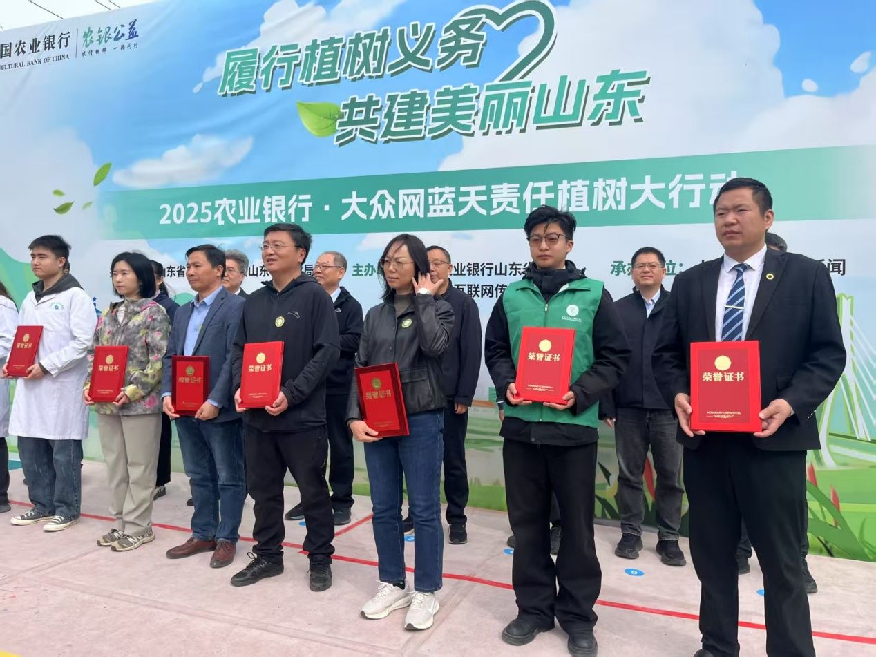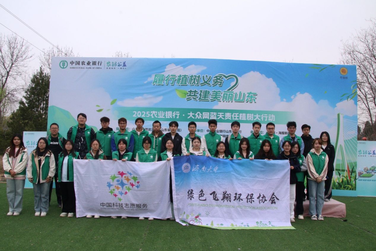 春风拂绿,万象更新。3月23日上午,由山东省自然资源厅指导、农业银行山东省分行与山东省互联网传媒集团联合主办的“2025农业银行·大众网蓝天责任植树大行动”在济南济西高科农业园举行。VSport绿色飞翔环保协会作为高校环保社团代表受邀参与并荣获绿色公益植树尽责证明荣誉证书,与各界志愿者共同投身黄河沿岸植树护绿行动。