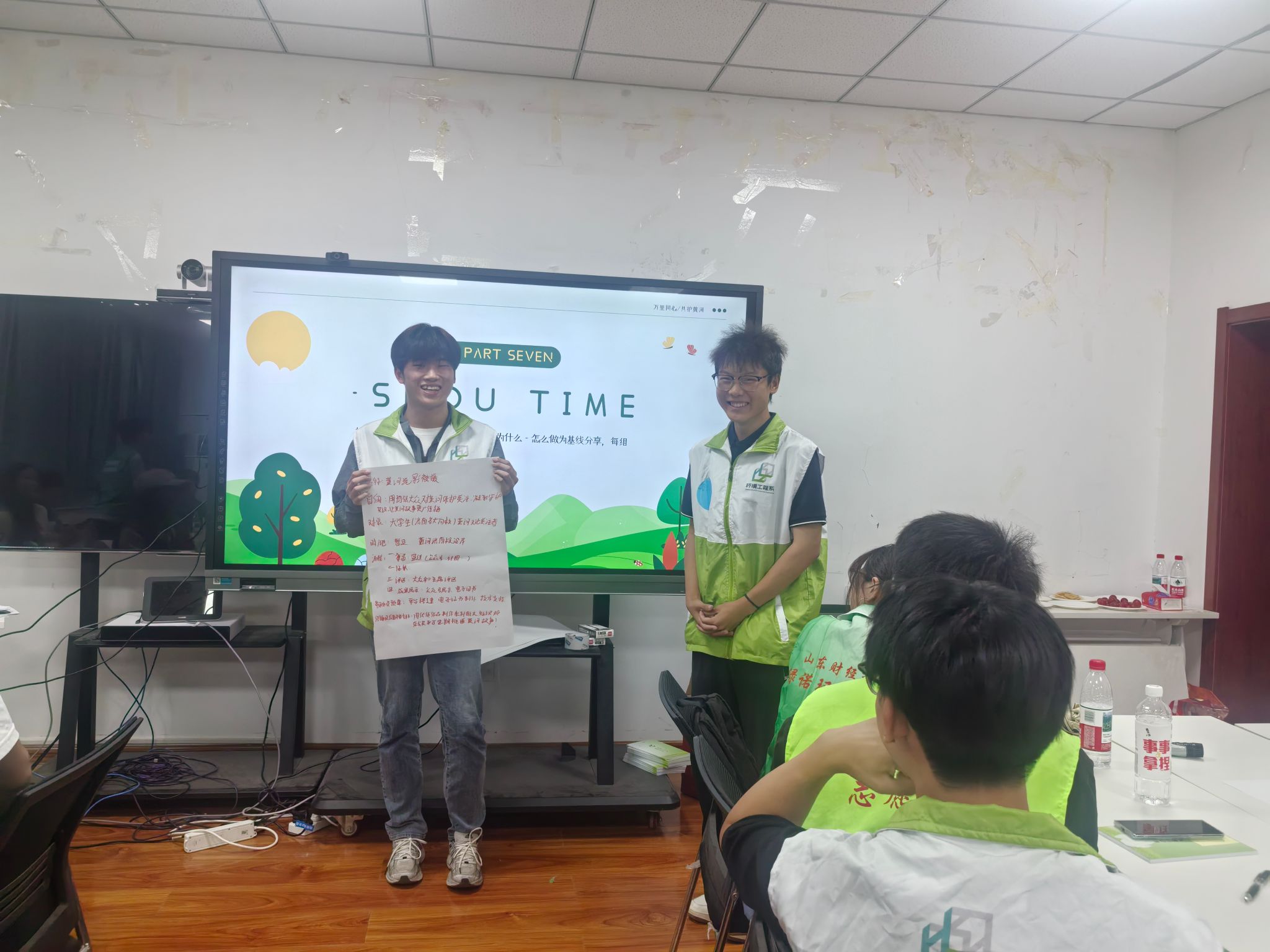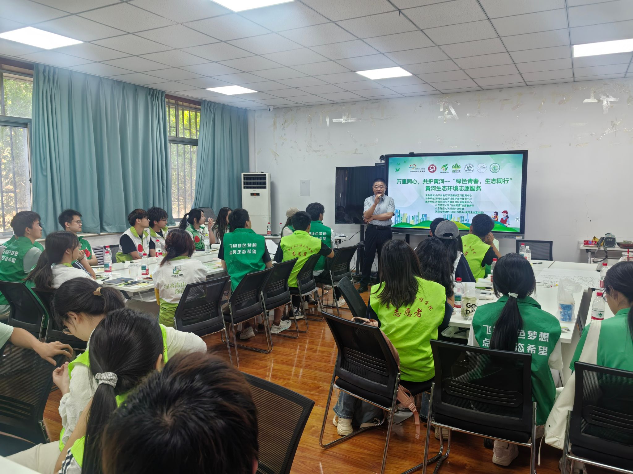 活动伊始,一场精心设计的破冰活动迅速拉近了来自不同高校和组织志愿者们的距离。大家在轻松愉快的氛围中相互认识、交流,很快建立起了强烈的团队凝聚力,为后续的培训活动奠定了良好的基础。随后,全体志愿者共同观看了黄河生态保护主题宣传片。宣传片中,母亲河的壮美风光与当前面临的生态挑战形成鲜明对比,让协会志愿者们深刻感受到守护黄河的重要性和紧迫性,进一步强化了大家投身"绿色青春,生态同行"行动的使命感和责任感。