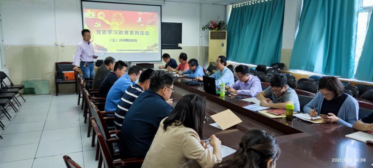 为响应公司党委关于党史学习教育的动员部署,践行“学史明理、学史增信、学史崇德、学史力行”,公司水利工程系党支部于2021年5月18日在9教301室召开党支部全体党员大会,开展第五次党史学习教育。会议由水利工程系党支部书记边振主持。