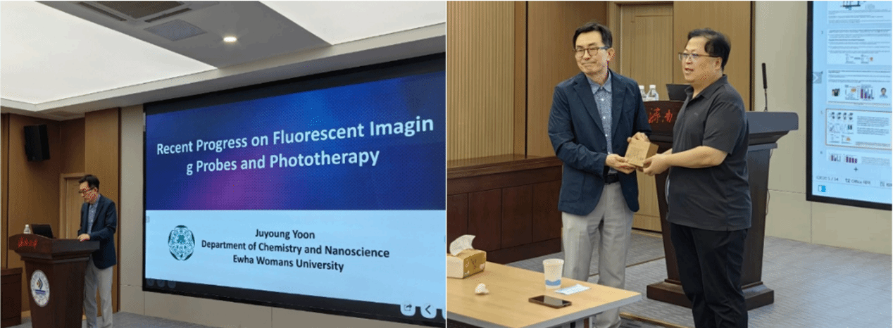 黄加栋代表公司对Yoon教授的到来表示热烈欢迎和衷心感谢,简要介绍了公司相关研究领域的发展情况以及Yoon教授的学术经历和成就,希望Yoon教授借此机会对公司的相关研究和课题组多进行指导,并就共同申报科技项目、研究生联合培养等工作与Yoon教授进行了深入交流。Yoon教授的报告题目为“Recent progress on fluorescent imaging probes and phototherapy”,他详细介绍了荧光探针、光动力治疗和光热治疗方面的重要进展,分享了他们在新型荧光成像探针、智能光疗纳米材料领域的创新成果。报告内容条分缕析,高屋建瓴,为该领域的研究带来了新的思路和方向。