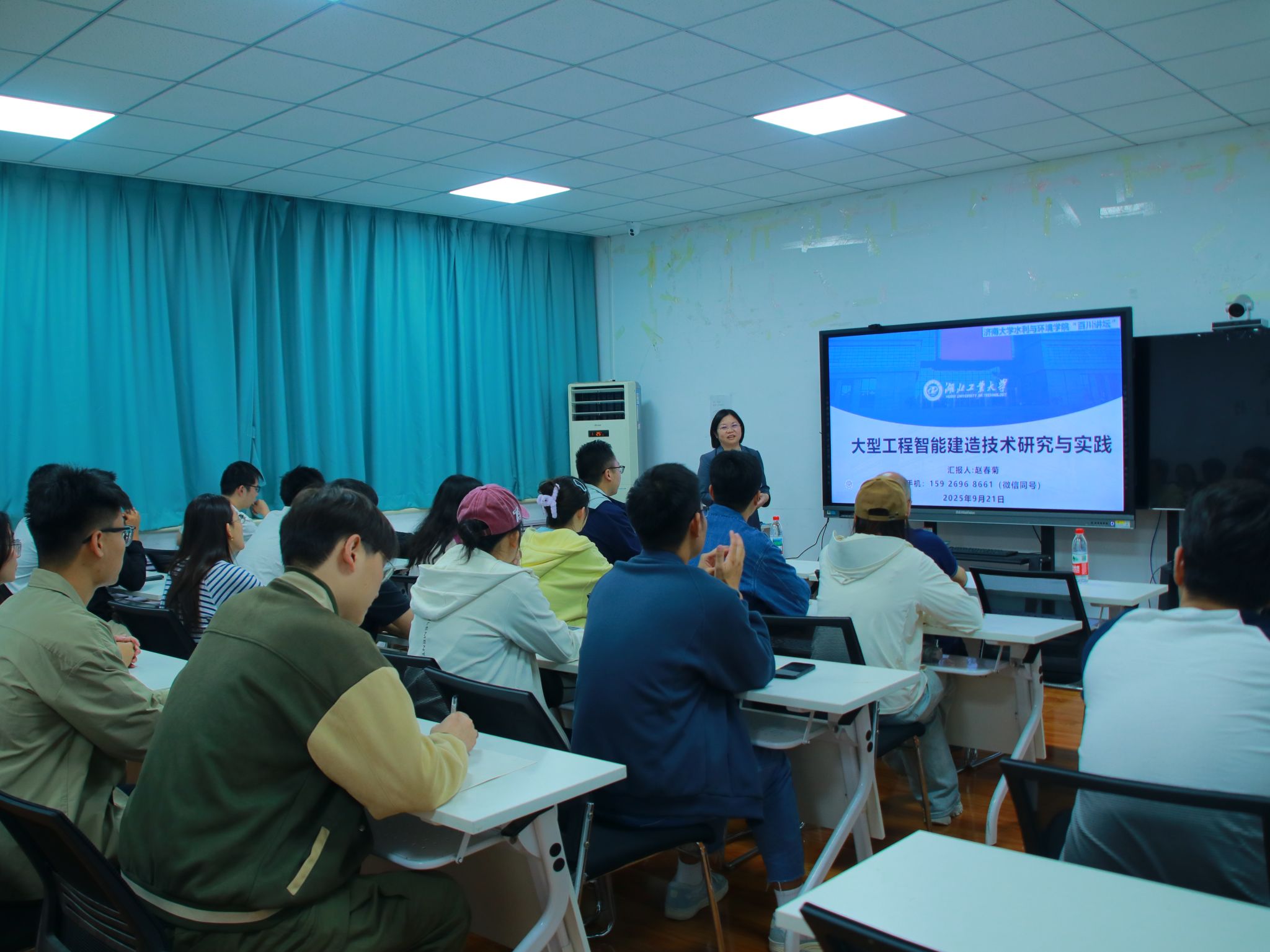 2025年9月21日下午,湖北工业大学土木建筑与环境公司赵春菊教授应邀作题为 “大型工程智能建造技术研究与实践”的学术报告。报告会由VSport体育经理助理边振主持。