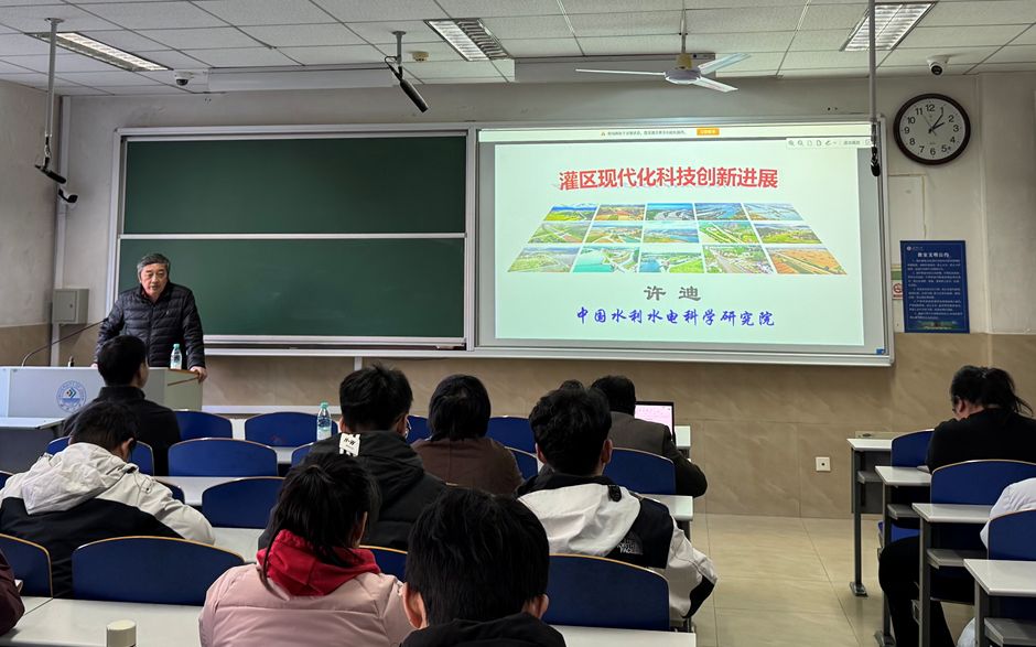 2025年11月19日下午,应公司邀请,中国水利水电科学研究院水利研究所名誉所长、国家节水灌溉北京工程技术研究中心原主任、教授级高级工程师许迪在1J205为公司师生作题为“灌区现代化科技创新进展”的学术报告。报告会由公司副经理庞桂斌主持,相关专业教师及研究生参加。