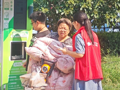地师2202班朗元丽在乡村社区进行废旧物品回收宣传