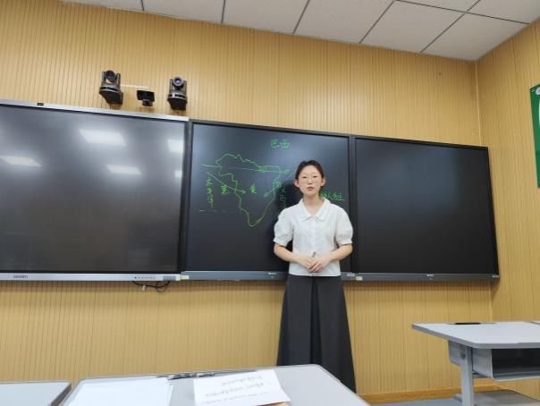 比赛中,参赛选手根据现场抽取的题目,进行模拟授课和现场答辩。本次比赛从多个维度对选手进行全面考察,包括教姿教态、教学设计、重难点把握、板书设计等。参赛选手们准备充分,以饱满的热情投入比赛,凭借清晰的教学思路和各具特色的教学方法,展现出了较高的教学水平和精神风貌。经过激烈角逐,王玥琳和燕晓倩脱颖而出,她们将代表公司参加2025年“田家炳杯”全日制教育硕士专业学位研究生学科教学(地理)方向教学技能大赛。