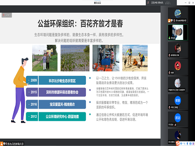 讲座伊始,首先张通老师向同学们介绍优秀员工郭永启,并对他表示热烈的欢迎。接着,优秀员工郭永启进行了主题为“浅谈环境保护在我国社会公益领域的实践”的演讲。他对社会环保组织的意义、工作任务与使命进行了详细介绍。他提到,组织将通过环境污染监督、山东联合护水行动、环境政策倡导项目三方面来实现人人可享美好环境的使命。随后,他通过几则日常工作案例的分析,向同学们讲述了环保组织主要工作内容以及日常工作场景,让同学们对环保组织工作有了更清楚的认识。最后,员工郭永启提出,要坚持“爱国、公益、理性、务实、包容”的原则,搞清问题导向,关注人的需求,建立起政府、企业、社会公众多层面的合作互动关系,希望同学们能够认识公益组织,参与环保公益,带着公益的理念学习工作,扬正气、逐清流。会议结束后,赵春辉主任对会议内容做出总结,他希望将来环境专业的同学们能与郭永启老师在环保公益、挑战杯、毕业设计等方面进行交流与合作,加强企业、组织、公司之间的联系,为环保事业做出贡献。