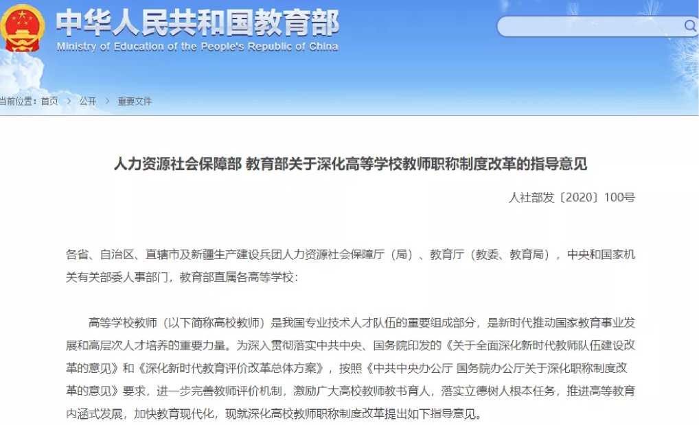 人力资源社会保障部教育部关于深化高等公司教师职称制度改革的指导意见